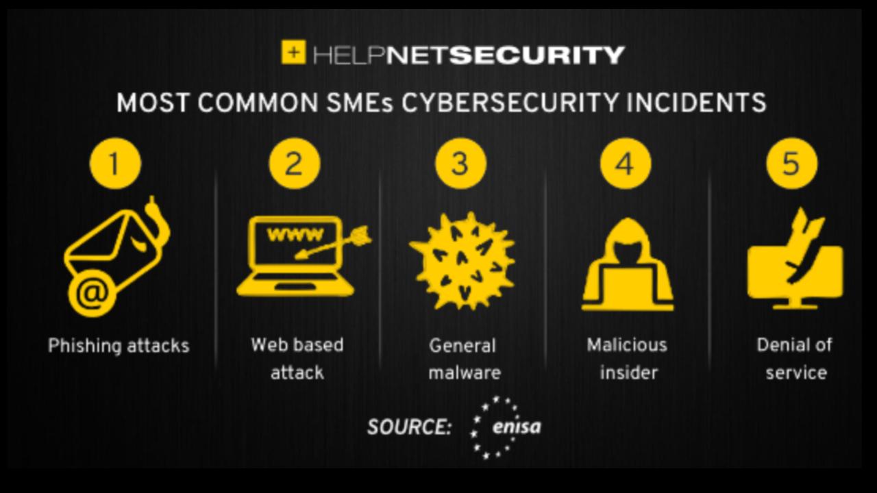 The top cybersecurity challenges for SMEs include a lack of security awareness and training, limited budgets and resources, the increasing sophistication of attacks like ransomware and deepfakes, the insecurity of remote work and personal devices, a shortage of cybersecurity talent, and difficulties with compliance.
