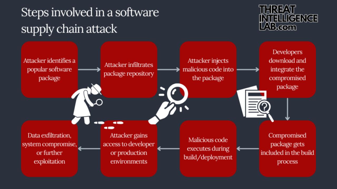 • Malicious Injection: Once inside the supplier’s environment, the attacker introduces malicious code into legitimate products, software updates, or open-source libraries that the supplier distributes to its customers.