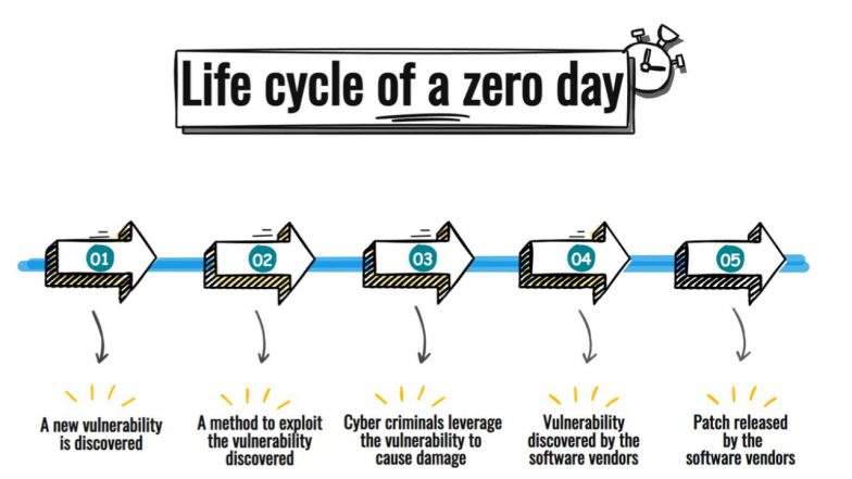 The core danger of a zero-day vulnerability is that no patch or official fix is available when it is first exploited. The typical process of a zero-day attack involves several stages:
